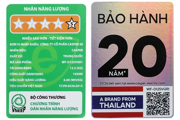 Máy giặt Casper inverter AI Smart 12.5kg WFD125VGR1