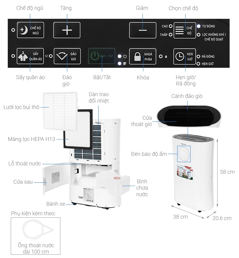 Công suất hút ẩm: 20 lít/ngày