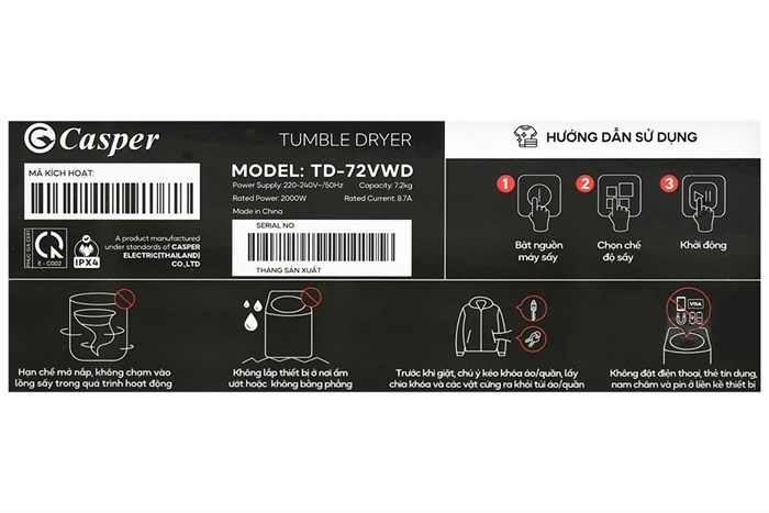Máy sấy Casper TD-72VWD trang bị công nghệ sấy đảo chiều tiên tiến