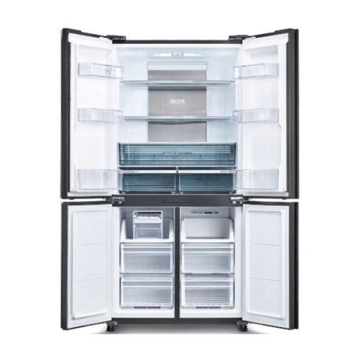 Tủ lạnh Sharp SJ-FX650V-MK sở hữu kiểu dáng MultiDoor 4 cánh sẽ mang lại một diện mạo sang trọng và dễ dàng bố trí trong mọi không gian bếp. Cửa tủ kim loại điện màu đen thép không gỉ cùng tay nắm ẩn mang đến sự liền mạch và hiện đại, tạo nên vẻ ngoài thanh lịch và tinh tế. Bên trong tủ, các khay kệ bằng kính chịu lực bền bỉ không chỉ giúp bảo quản thực phẩm hiệu quả mà còn dễ dàng vệ sinh và sắp xếp gọn gàng.